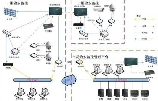 平安城市項目是一個長期建設(shè)與維護項目,公司目前主要負責第三期建設(shè)與一期改造,將一期建設(shè)的系統(tǒng)融入二期新系統(tǒng)中,實現(xiàn)整體協(xié)同作用。公司通過把采集到的各種視頻、音頻、信號等信息融入到客戶的信息管理平臺之中,根據(jù)城市區(qū)域、場所、道路的分布情況對不同地方的安全等級進行劃分,提供相應的城市視頻監(jiān)控系統(tǒng)解決方案,采購實現(xiàn)安防解決方案所需設(shè)備或使用公司自有品牌產(chǎn)品、并對整體系統(tǒng)實施安裝、施工、集成及其他定制化服務(wù)??傮w架構(gòu)圖如下所示: