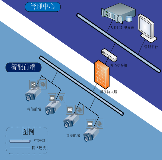 HT-AS1500-FA人臉實時報警服務器其實現了人臉抓拍圖片(按智能前端、時間段、年齡、性別、是否戴眼鏡等屬性)存儲查詢、實時黑名單匹配報警和徘徊人員預警等功能。HT-AS1500-FA人臉實時報警服務器通過VPN專網接收智能前端抓拍的人臉圖片,經過與預錄入的黑名單庫的比對匹配,得出相應圖片的相似度,并對相似度超出警戒線的圖片進行標識和即時報警。